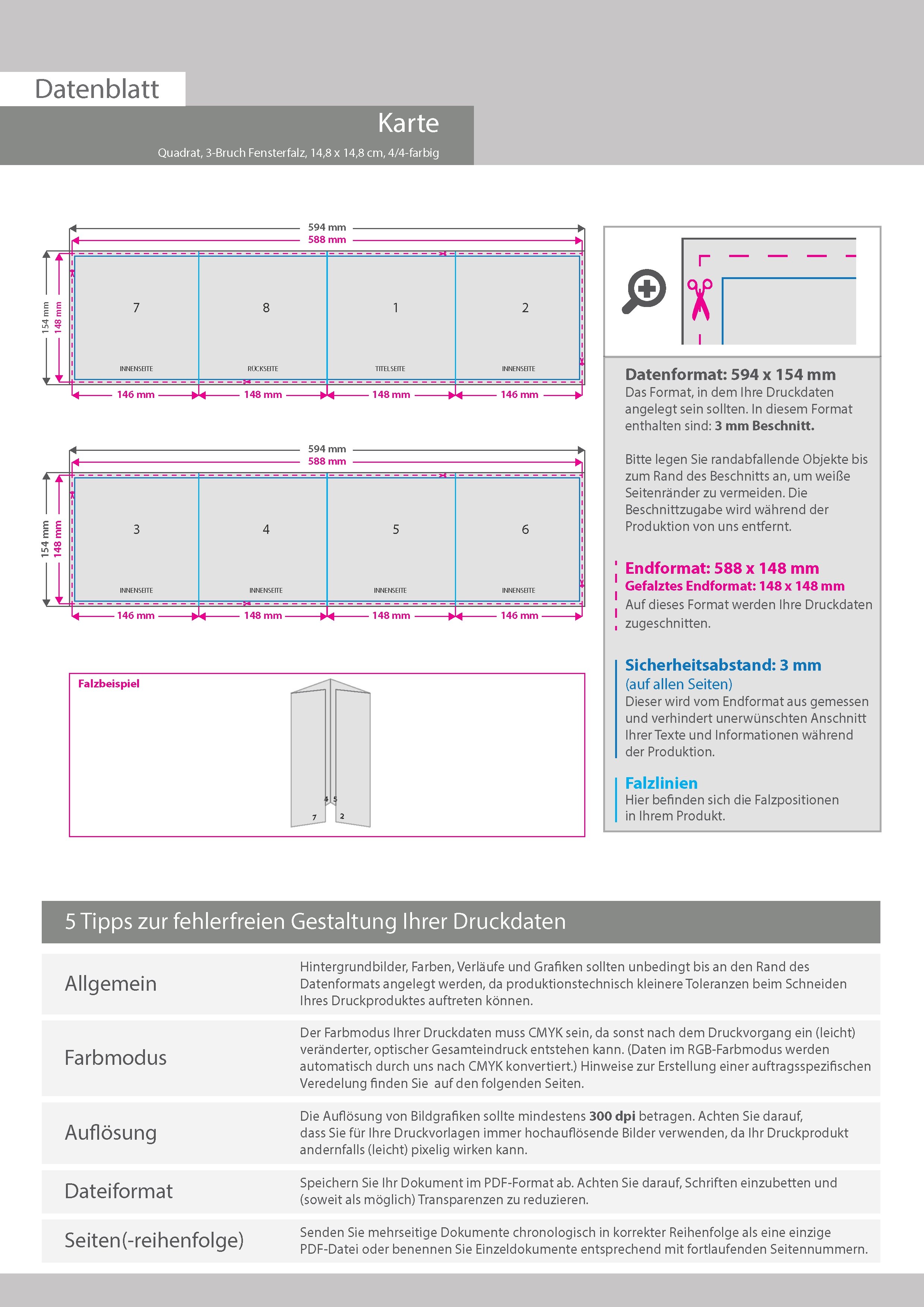 Taufkarte, gefalzt auf Quadrat 14,8 cm x 14,8 cm, vertikaler 3-bruch Fensterfalz, 8-seitig