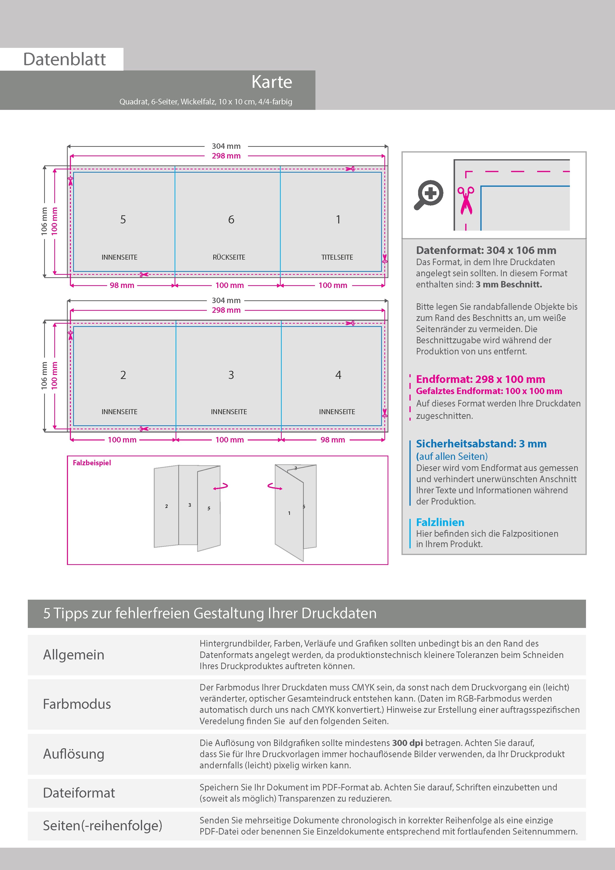 Taufkarte, gefalzt auf Quadrat 10,0 cm x 10,0 cm, vertikaler Wickelfalz, 6-seitig